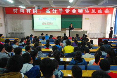 2014年4月14日下午,高分子材料与工程专业师生见面会在西教2号楼208举办,suncitygroup太阳集团党委副书记王庆明、高分子专业负责人陈振斌教授及全体高分子专业老师和材料院全体辅导员老师出席了此次活动,14、13、12级全体高分子专业学生和部分11级优秀考研与就业学生代表参加了此次师生见面会。