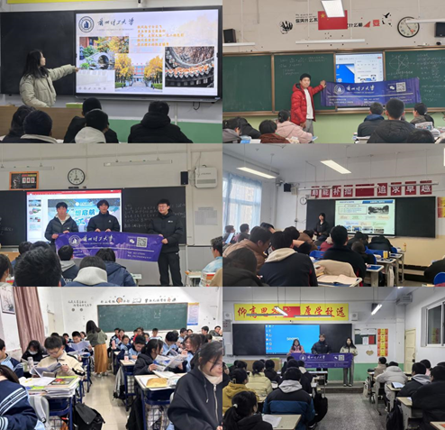 在福建省泉州市石狮市永宁中学的课堂上,张蕾、朱婧垚、张喜洋三名同学各自分享了自己在兰理工的精彩大学生活,帮助学弟学妹们了解大学校园的点点滴滴;由23级焊接基地班刘文博带领的宣讲队伍,分成两组前往陕西省延安市宝塔区第四中学和渭南市瑞泉中学,为母校学子进行了详实的兰理工学校介绍、专业分享等内容,获得老师和同学的好评。